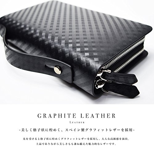 -. Title : 【LANZA】 ランザ スペイン製 グラフィットレザー ダブルジップ セカンドバッグ