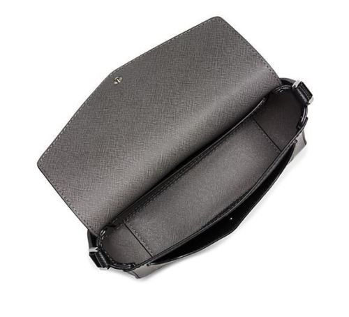 -. Brand : -. Color : Black -. Department : womens -. EAN : 0889154546585 -. Feature : Durable Saffiano leather with contrast leather on front / Measures approx. 8 inch (W) x 5.5 inch (H) x 2 inch (D); adjustable leather shoulder/crossbody strap with 22 inch drop / Flap top closure; convenient crossbody style; polished silver tone hardware / Polished brass hardware; "" circle emblem with leather casing charm / Unlined interior with satin fabric and one small slip pocket -. PackageQuantity : 1 -. ProductGroup : Shoes -. ProductTypeName : HANDBAG -. Size : Small -. Title : MICHAEL Womens Greenwich Small Crossbody (Black/Steel Grey) -. UPC : 889154546585