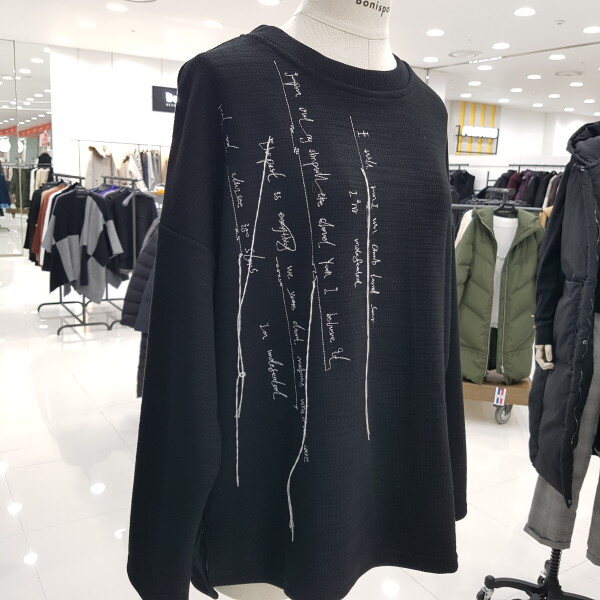 레터링 자수 포인트 디자인 티셔츠로 안감에 기모가되어있어 따뜻하면서 스타일리쉬하게 착용할수 있는 아이템 입니다