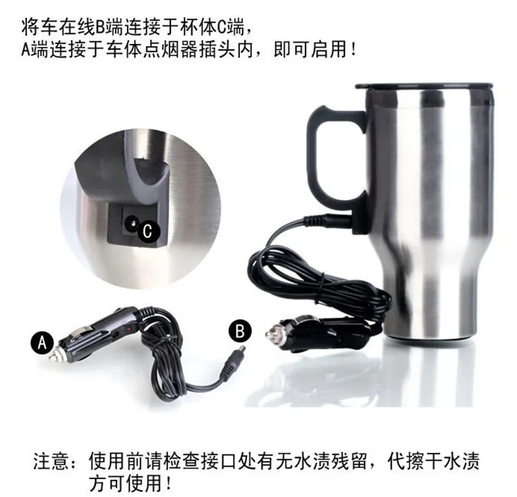 This stainless steel cup stuffed into your car's cigarette lighter, keeping the temperature 60 ° C - make your tea or coffee warm and drink when you travel.