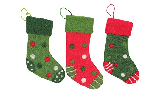 8.75-Inch Felt Red and Green Stockings 3 Assorted