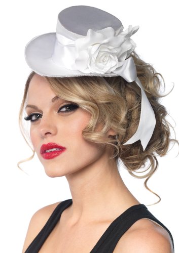 -. Title : Leg Avenue Satin Top Hat With Flower And Bow Accent