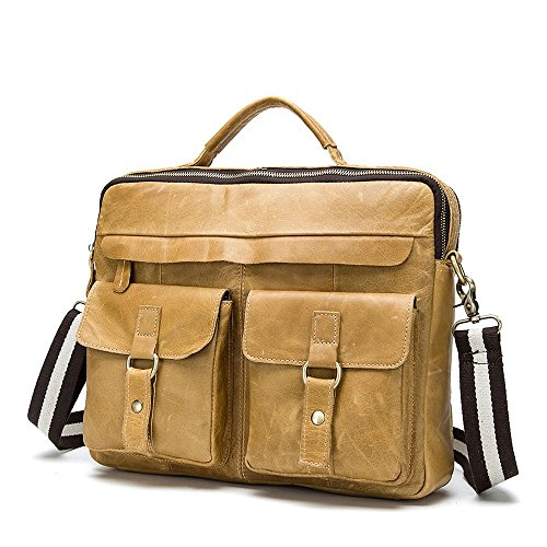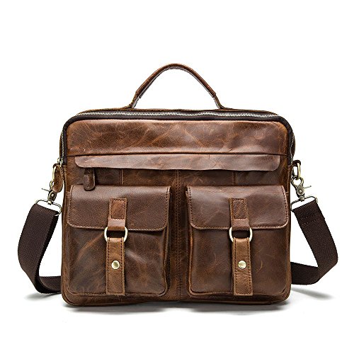 -. Feature : Material: 100% brand new. High grade genuine leather-featured with the first layer of cowhide, and high quality suture process. / Dimension: 13.8(L)*11.8(H)*3.5(W)inch, the weight is 2.2 pounds. / 3 Ways to hold as: handbags, shoulder bags, messenger bag. / With detachableand adjustable shoulder straps for comfortable wearing. / Compartments:1 interior zipper pocket, 2 interior cell phone pockets, 2 main compartment pockets which can fit 14 inch computer / A4 files, 2 front pockets, 1 back zipper pocket.