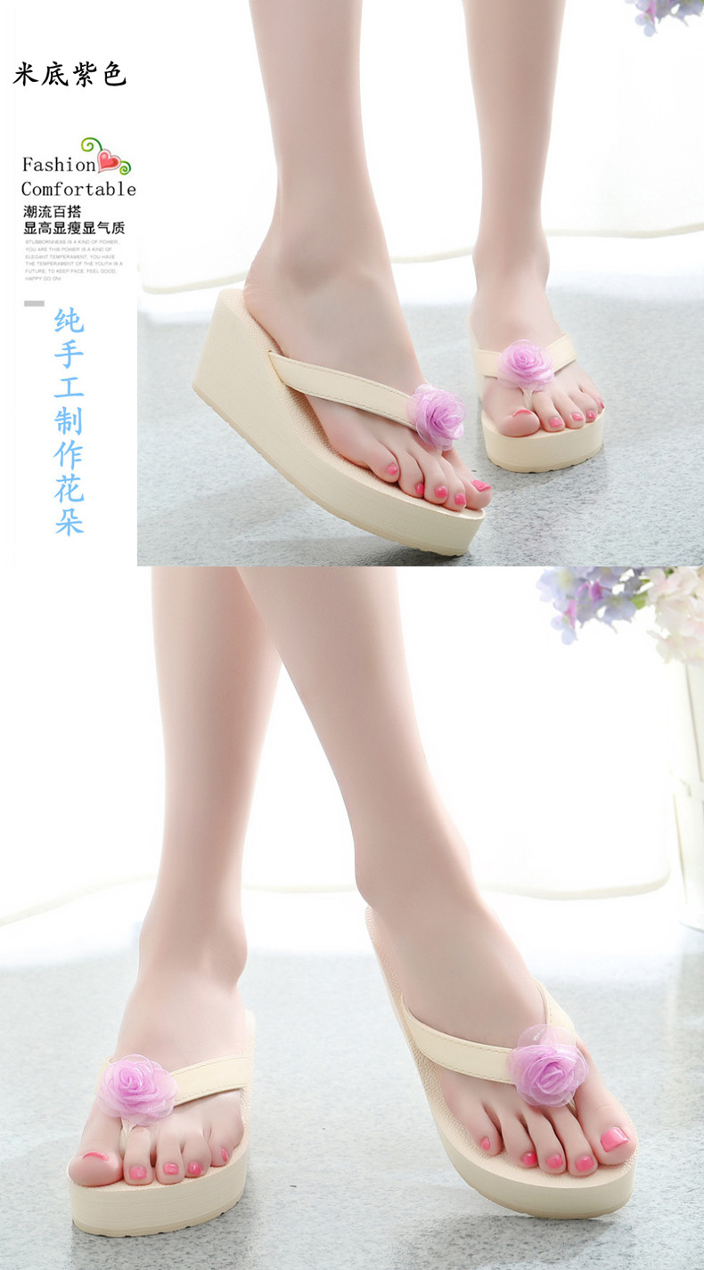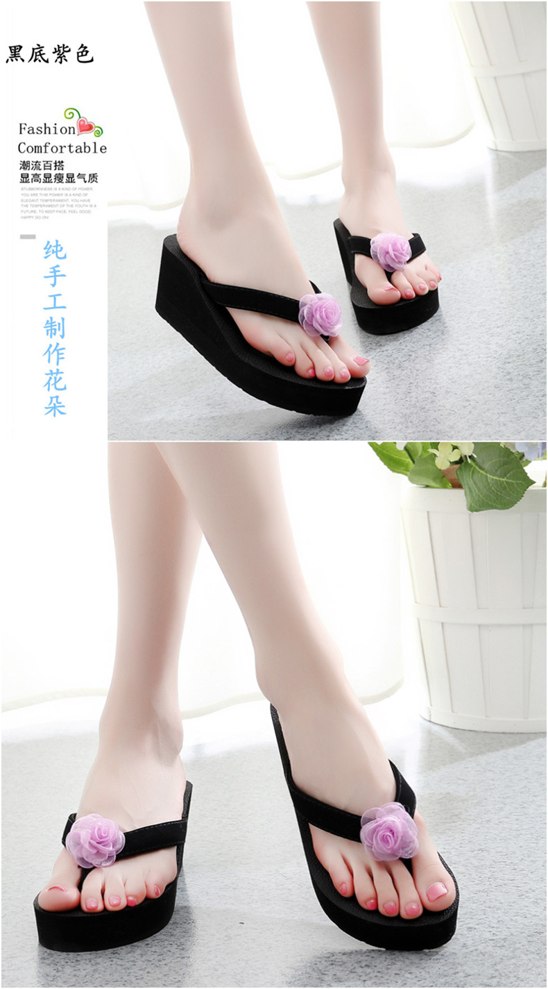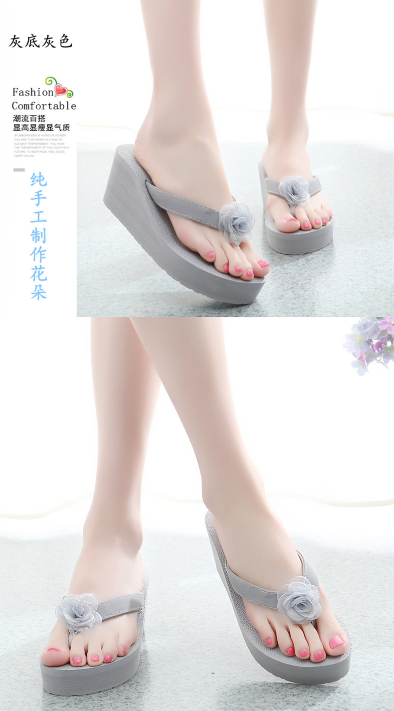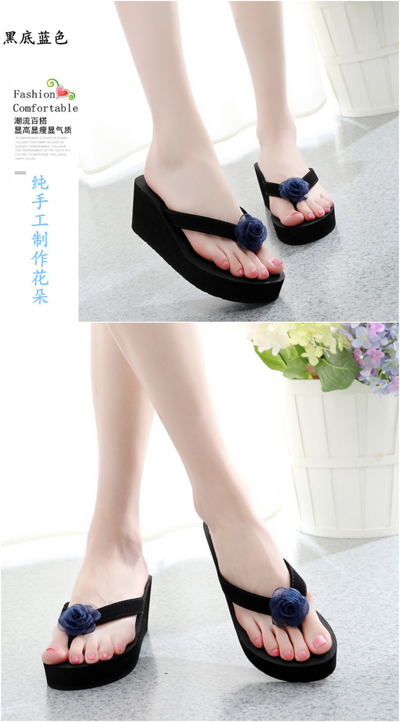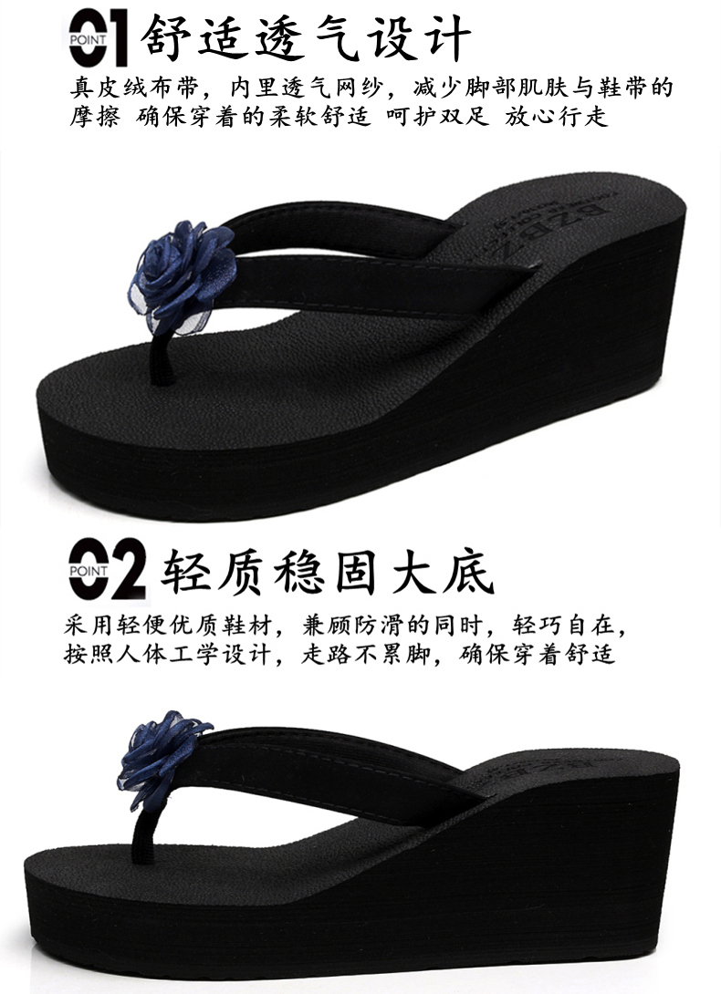 外穿厚底沙滩鞋坡跟人字拖时尚花朵凉拖鞋女夏季韩版高跟夹脚夹拖