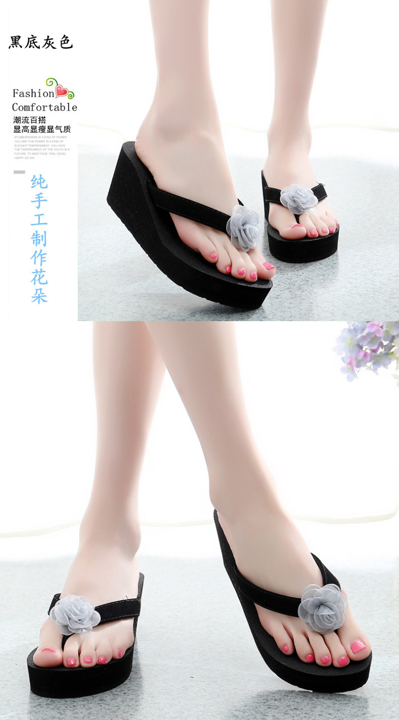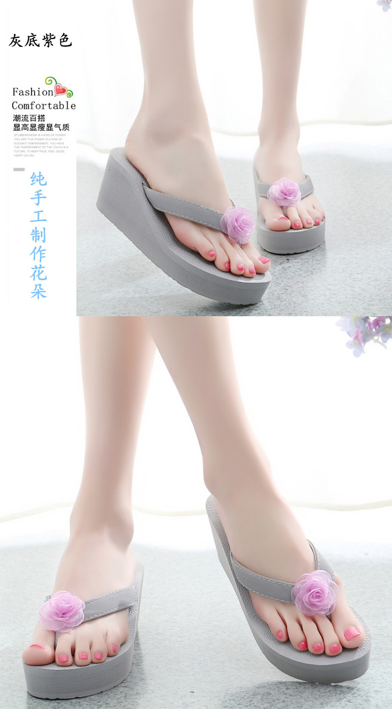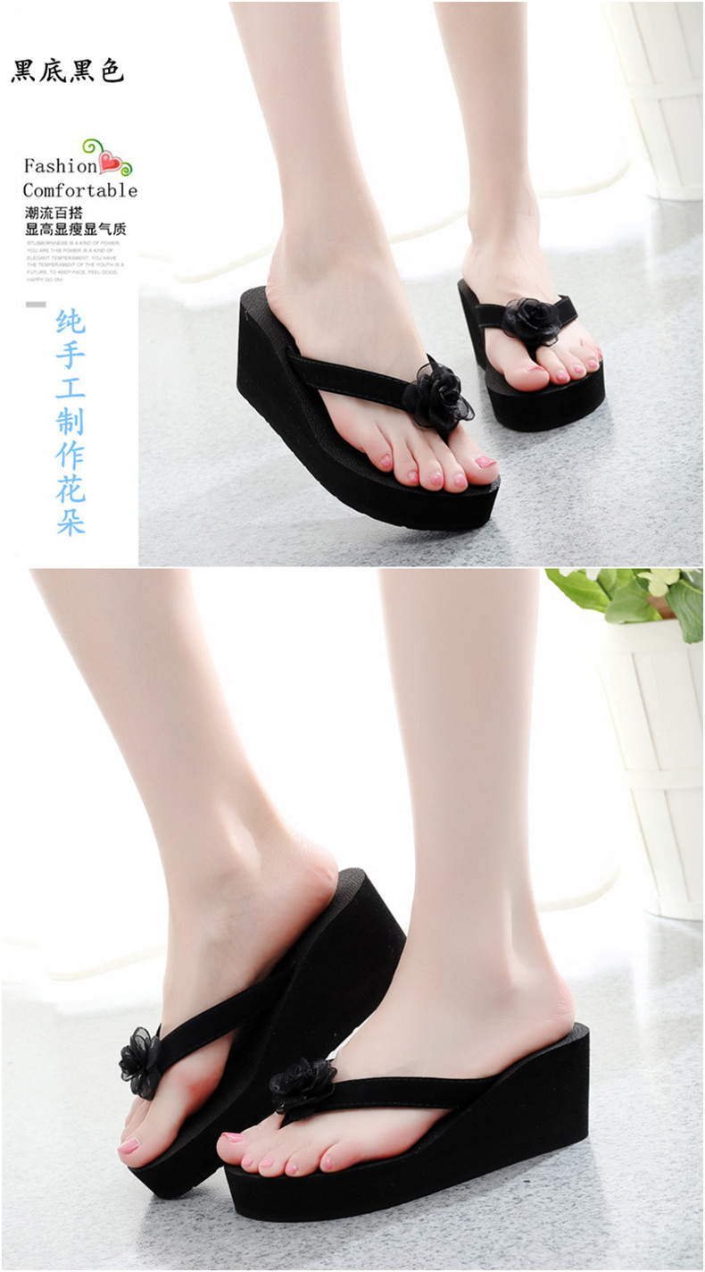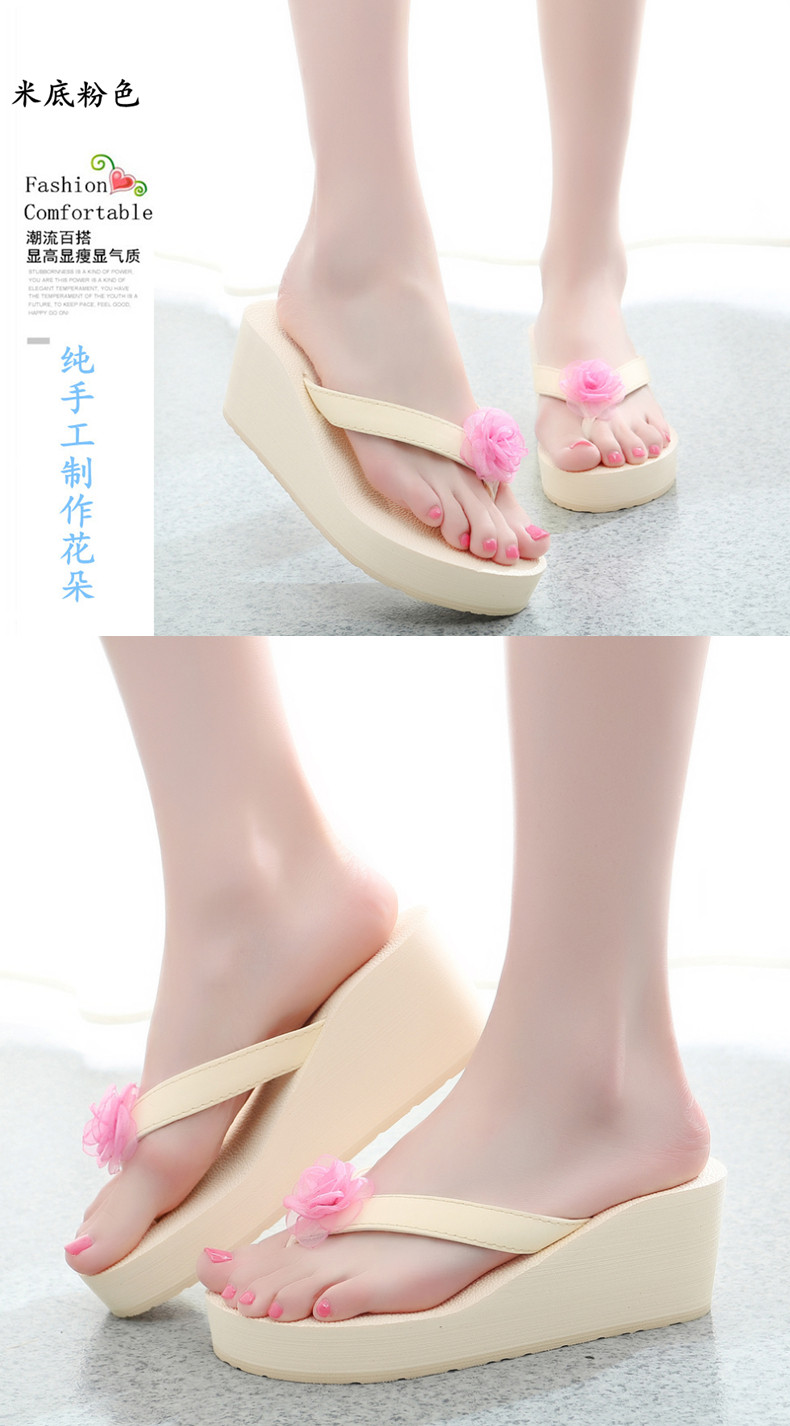 外穿厚底沙滩鞋坡跟人字拖时尚花朵凉拖鞋女夏季韩版高跟夹脚夹拖