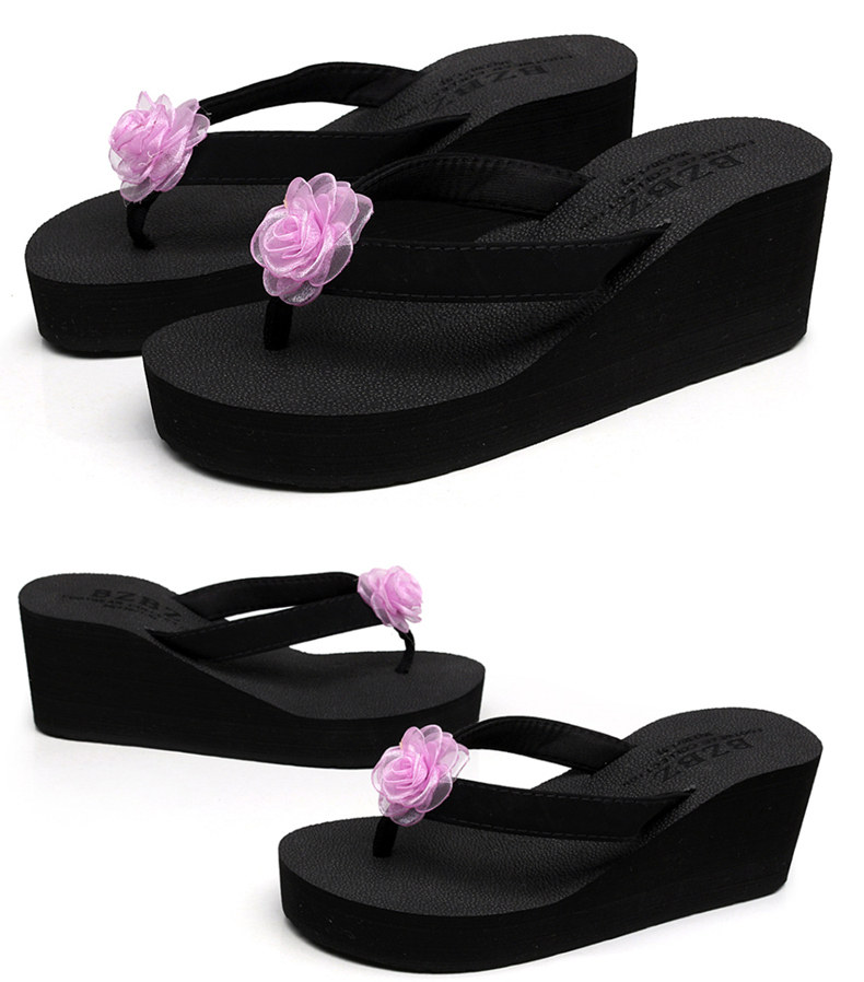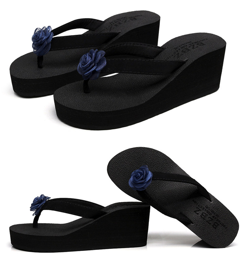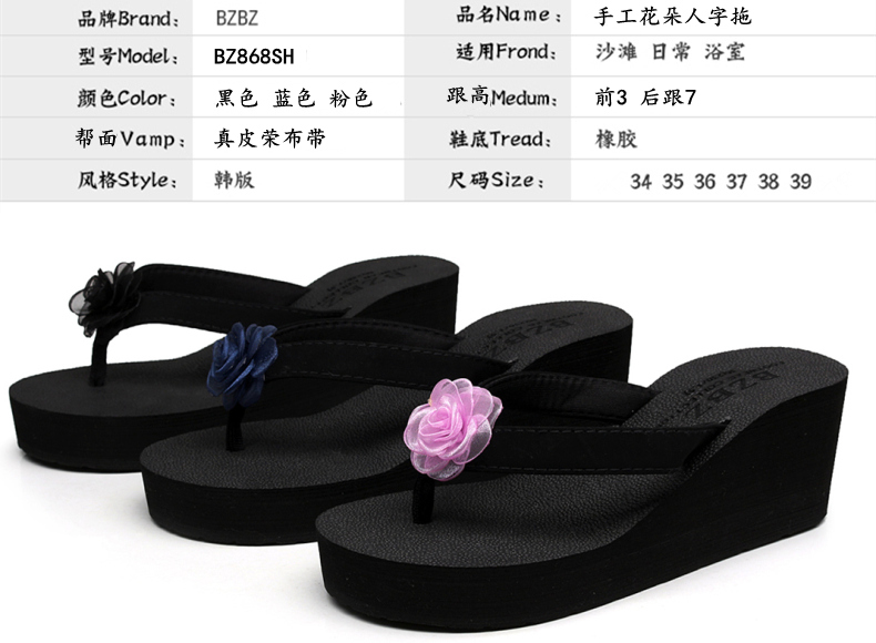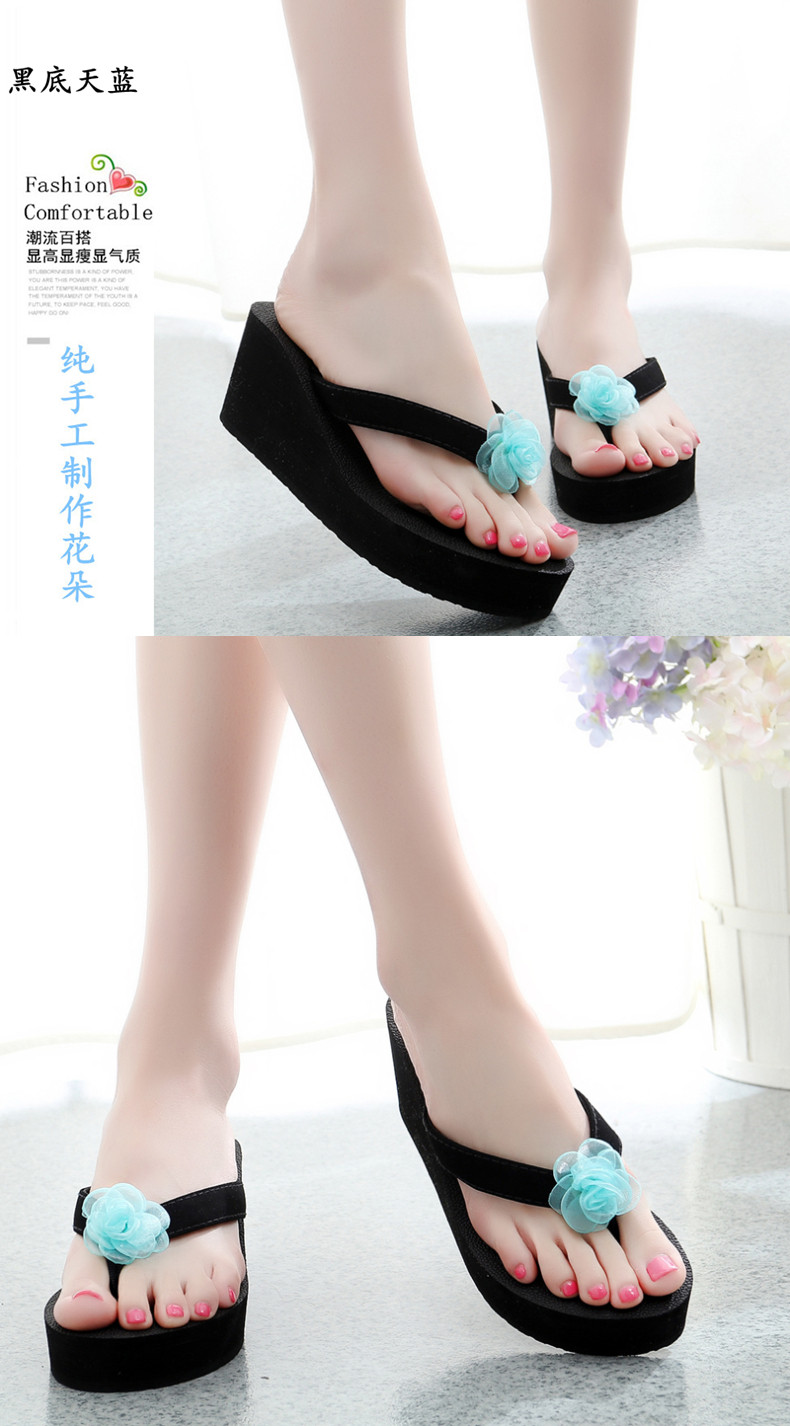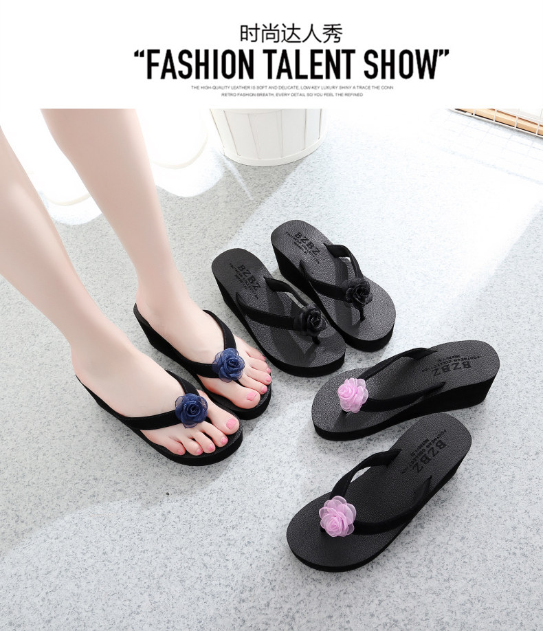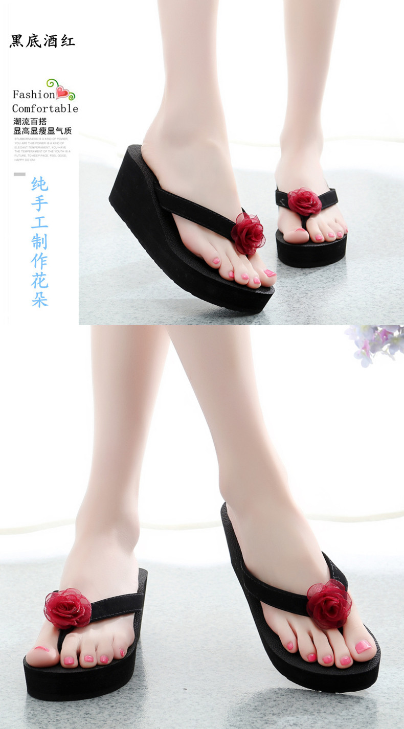 外穿厚底沙滩鞋坡跟人字拖时尚花朵凉拖鞋女夏季韩版高跟夹脚夹拖