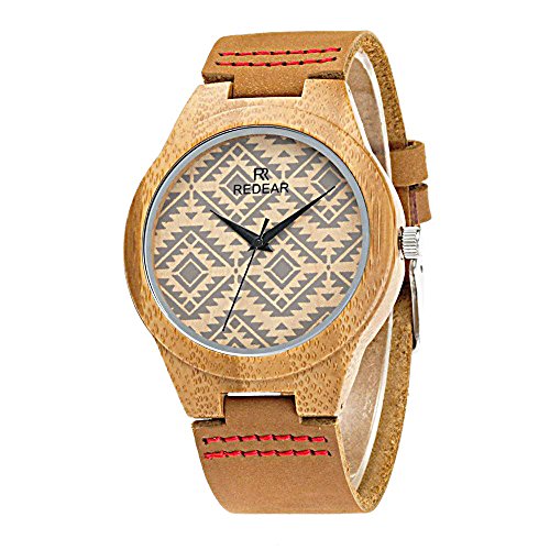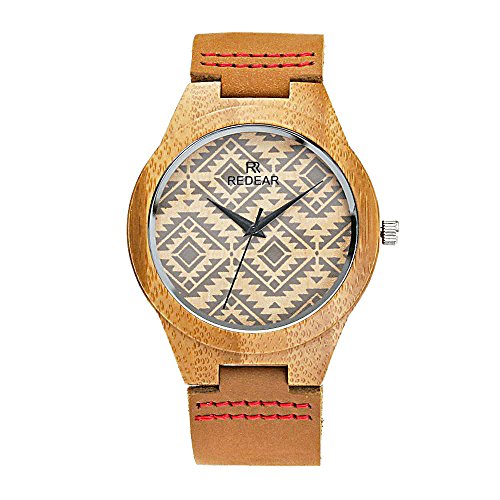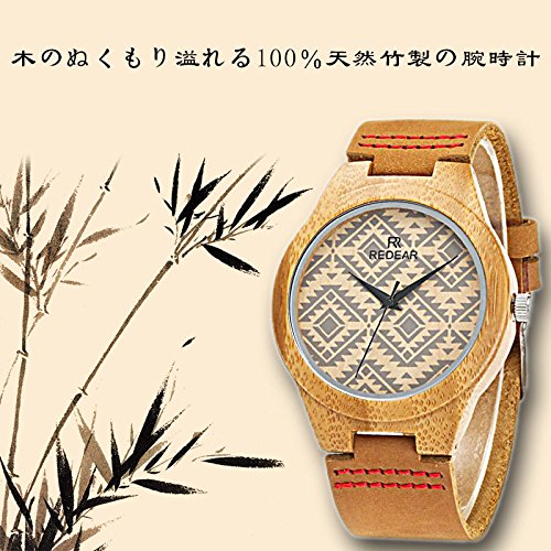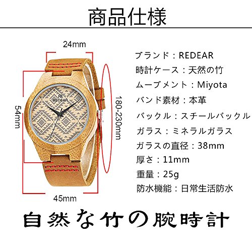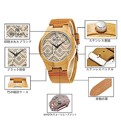 -. Title : REDEAR 木製腕時計 ウッドウォッチ 本革バンド 竹の木 天然木 プレゼント 贈り物 カップルの腕時計