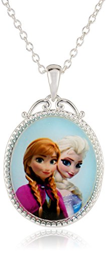 Disney Girls' Frozen Silver-plated brass pendant with portrait style image of Princess Elsa and Anna with "Best Sisters" engraved on the back