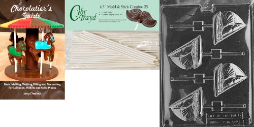 Cybrtrayd 'Sailboat Lolly' Kids Chocolate Candy Mold with 25 4.5-Inch Lollipop Sticks and Chocolatier's Guide