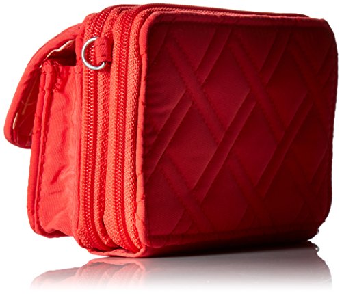 Just because the days are getting shorter doesn’t mean you can’t bring a little light into your life with our bright Vera Bradley colors and patterns! Find the perfect accessories to match your winter fashion this year, or search our collection for the perfect holiday gift! Our genuine Vera Bradley All-In-One Crossbody will warm up your sense of style this season with the fun and considerate designs we are known for. Ever have one of those days when you aren't sure if you need a wallet, a wristlet, or a crossbody? The All in One Crossbody can do all of that easily without sacrificing fashion. Featuring a front magnetic pocket sized perfectly to fit an iPhone 5 or the Samsung Galaxy as well as one zippered compartment including two slip pockets and a zippered coin pocket. A second zippered compartment includes a large bill pocket; six card slips and an ID window for perfect organization every day. Measuring 6.5 x 3.75 x 2 inches with 52 inch removable, adjustable strap and 6 inch removable wrist strap this little crossbody is all you need. Compatible with iPhone 6 and some Samsung Galaxy models. At Vera Bradley, we believe in quality and style which is why we build our beautiful bags to keep you in lasting luxury with our Vera Vera Collection. Our lightweight, solid-colored Vera Vera collection is offered in stitched microfiber. It's a perfect fabrication for the customer who wants solid colors in her bags and accessories. The quilted stitching sewn in tight configurations make up the iconic Vera Bradley Square Diamond Stitch, which not only adds an element of embroidered appeal and aesthetic, but also enhances the durability of your favorite bag. Our bags are made for long lasting convenience and style, this item can be a go-to staple for years to come. At our very core, Vera Bradley is an innovative brand for women. We’ve always been inspired by the needs of real women, and our proudest moments have been when we can bring communities of women together through their shared love of beauty. We design our products with a deep understanding of our consumer. You are the focus of all we do.Feature