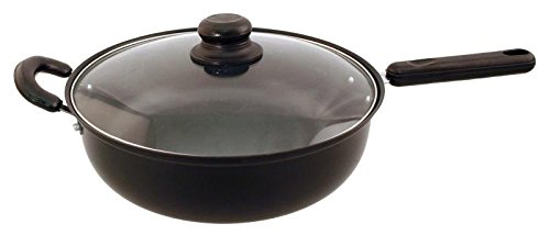 The EuroWare Essential 11" Carbon Steel Chicken Fryer with Glass Lid with Steam Vent, 4 Quart, Black is the perfect kitchen companion for any cook. With it's 11" width size and 4 quart capacity you can start cooking meals for the whole family. Whether you're frying up chicken or vegetables the EuroWare Chicken Fryer is the perfect fry pan and will make any meal a success. With it's carbon steel non stick coating construction this pan will allow you to spend more time cooking and less time scraping. The glass lid allows you to watch the food as it cooks and make sure it's just right. The vented lid allows you keep from over boiling and makes sure your food is perfect every time. Comes with heat resistant handle as well as a helper handle for ease when carrying. The EuroWare Chicken Fryer is dishwasher safe and easy to clean.Feature