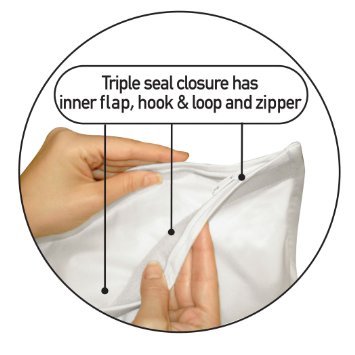 -. Feature : Triple sealed closure has inner flap, hook & loop and zipper. / Doctor Recommended, Helps allergy and asthma sufferers by providing a protective barrier against pollon, dust, dust mites and other allregens / Double layered, 250 thread count soft cotton rich and triple sealed protection / Comfortably soft and noiseless, yet strong and durable / Zippered mattress encasement fits any mattress depth from 10" to 18"