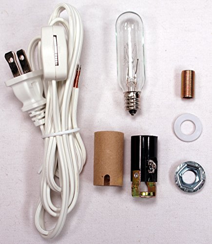 - Includes 6 foot UL listed white cord set with rotary on/off switch, candelabra socket, 25 watt bulb and all hardware.
