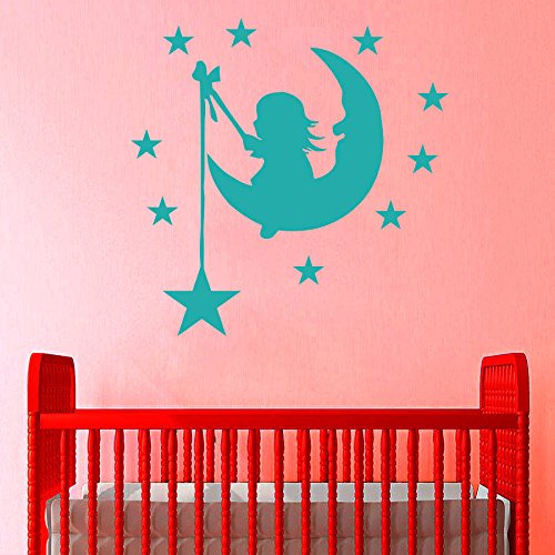 -. Title : Ditooms Wall Decals Nursery Baby Girl On Moon With Stars Decal Vinyl Sticker Baby Children Nursery Decor Bedroom Interior Window Decals Art