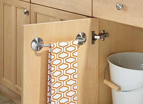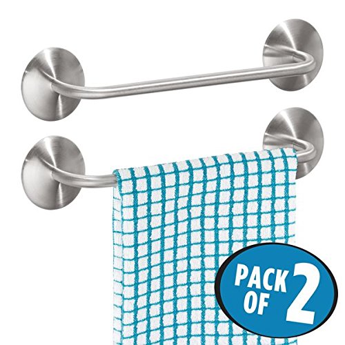 mDesign Kitchen Self-Adhesive Towel Bar Holder for Hand Towels, Dish Towels - Pack of 2, Brushed Stainless Steel
