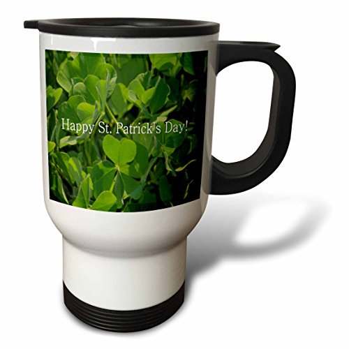 3dRose Clover Shamrock Happy st Patrick'S Day Stainless Steel Travel Mug, 14-Ounce
