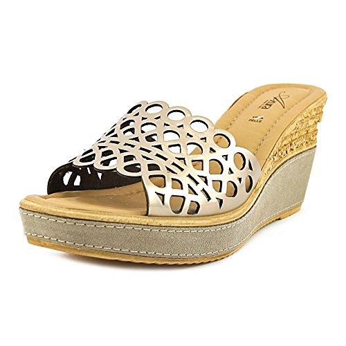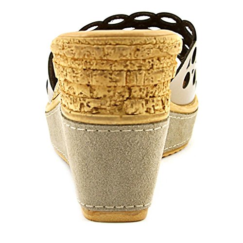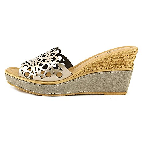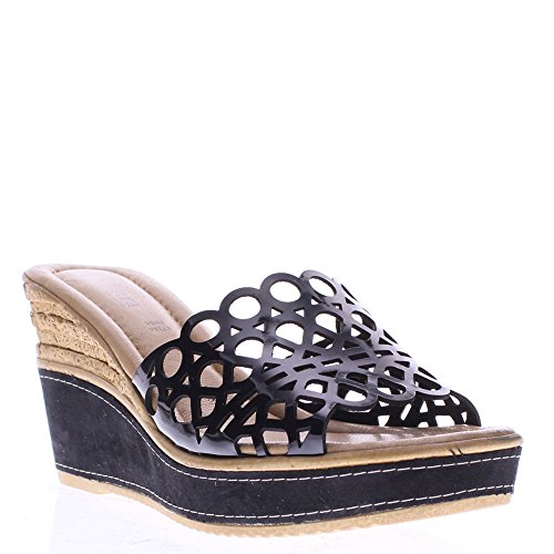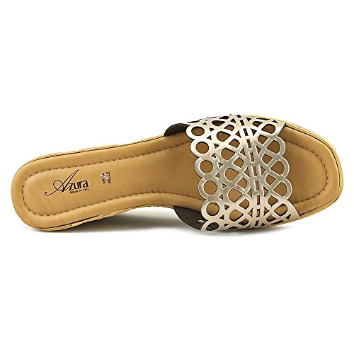 Studio : Azura Publisher : Azura Binding : Apparel Product Description Get noticed and remembered every time you walk in wearing the Azura Polidor sandal. Offered in a selection of premium leathers, this Italian-made women's platform wedge slide sandal is a standout for its detailed cutout pattern. Plush cushioning lends walking and standing comfort. Underfoot, the combination cork and suede-wrapped midsole flaunts on-trend color-blocking atop the durable polyurethane sole. 1' platform height, 3½' heel height. 0