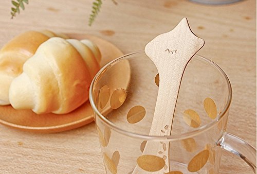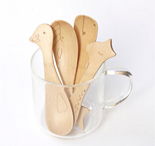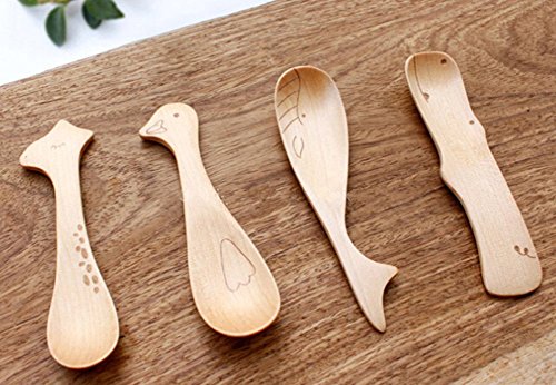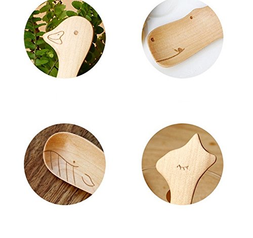 -. Title : Zabrina 4 PCS Cute Cartoon Natural Wooden Animal Cutlery Set / Wooden Spoons for Children / Baby