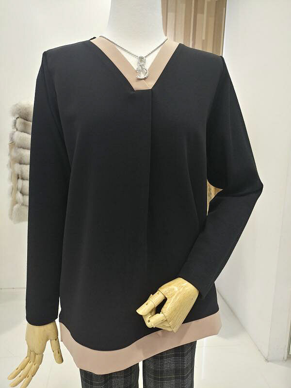 앞은 블라우스소재고 백라인은 티셔츠소재로 편안한 활동성을 드리고