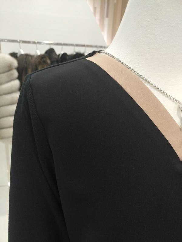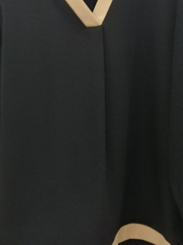 네크라인과 바디하단의 배색이 전체 분위기를 정돈해주고 페이스를 화사하게 표현해주는 아이템입니다