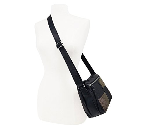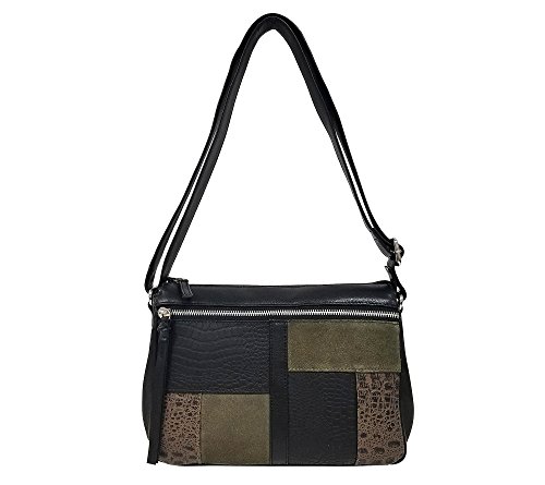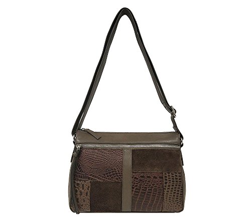 Product DescriptionMixed suede and croco patchwork panels give a rustic-mod update to this GAL Leather crossbody.0