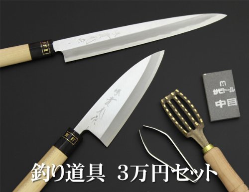 원본상품명: 實光包丁 釣り具 セット 釣り特集 3万6千円セット 〔出刃 刺身 うろこ取り 骨?き サビト?ル〕