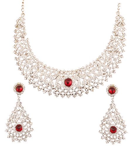 -. Title : Touchstone white tone Indian bollywood sparkling white rhinestones bridal jewelry necklace set for women