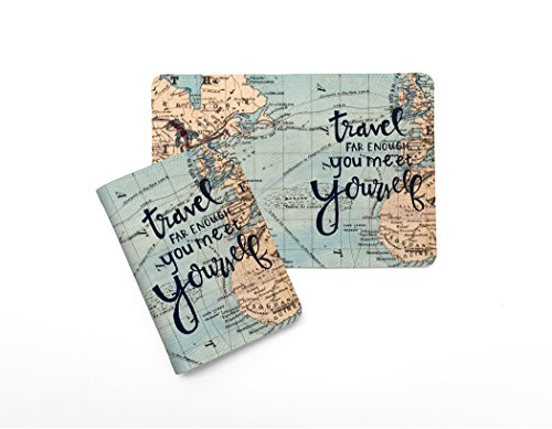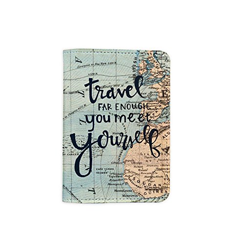 (SUPERTRAMPshop)/Accessories/Wallets, Money Key Organizers/DIRECT FROM USA/Travel Far Enough To Meet Yourself World Map Leather Passport Holder - Passport Protector - Pas...