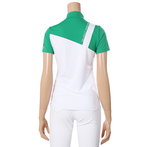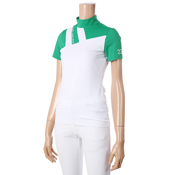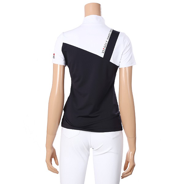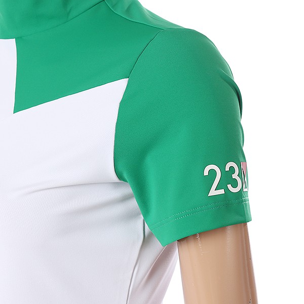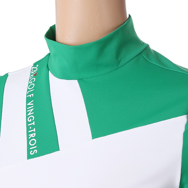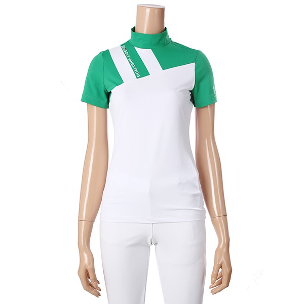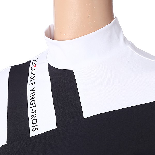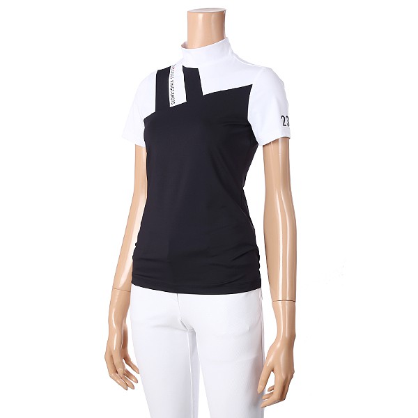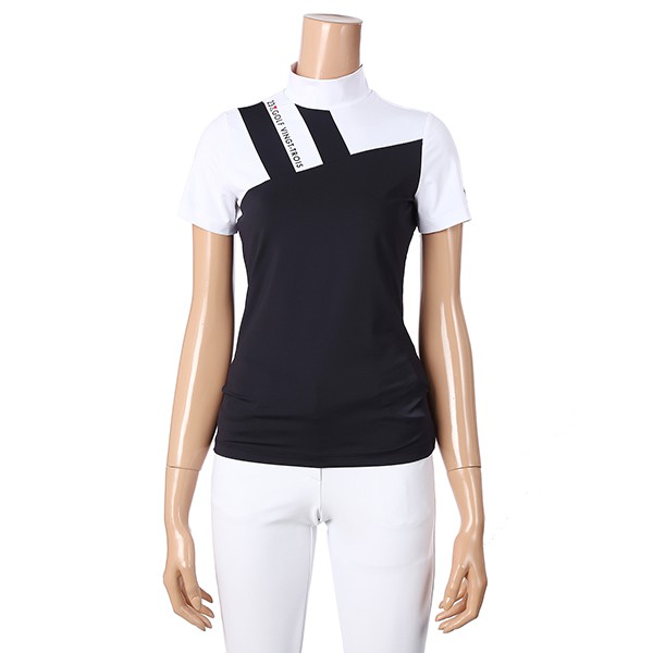 - 컬러 블러킹 절개 디자인으로 단품으로도 연출 가능한 반팔 하이넥 티셔츠