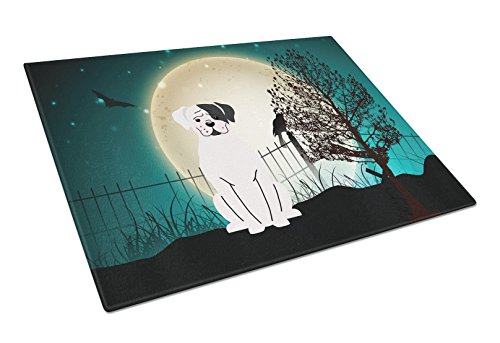 Caroline's Treasures BB2304LCB Halloween Scary White Boxer Cooper Glass Cutting Board, Large, Multicolor