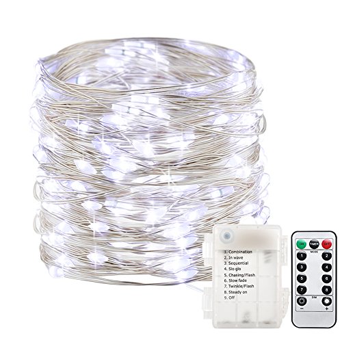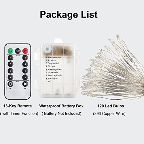 GDEALER 120 Led 39ft Fairy Lights Fairy String Lights Battery Operated Waterproof 8 Modes Remote Control String Lights Copper Wire Firefly lights for Bedroom Wedding Festival Decor Cool White