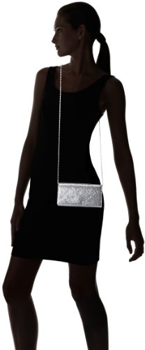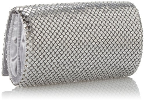 The East/West Metal Mesh Roll Clutch has a snap closure, an inside back wall slide pocket, and a hidden chain strap.