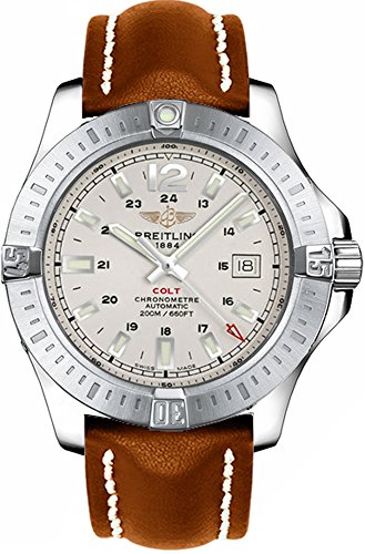 -. Title : Breitling Colt Automatic 44mm Brown Leather Strap Men's Watch