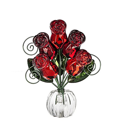 Rose Posy Flower Bouquet 4.5 Inch Acrylic Tabletop Photo Holder Figurine - Red