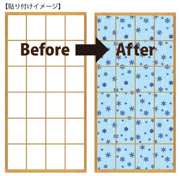 降りゆく雪の結晶の模様を印刷した障子紙。和洋折衷のお部屋にも、和風のお部屋にも似合います。のり・両面テープ、どちらでも貼ることができます。 |