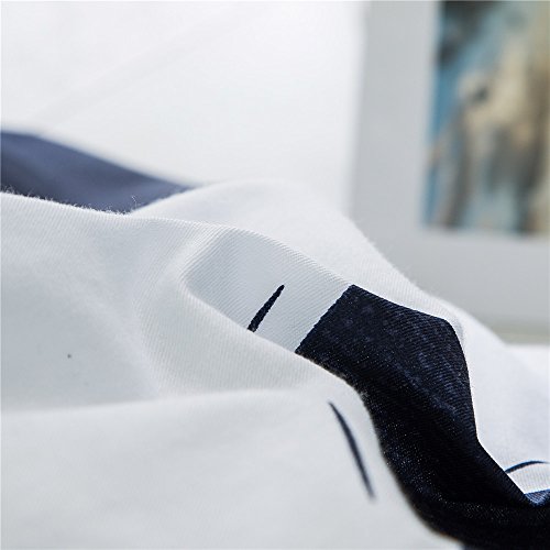 VClife Navy White Grey Cotton Duvet Cover Sets, 3 pcs Wave Patterned Bedding Sets for Boys Mens