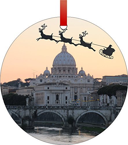 -. Title : Santa and Sleigh Riding Over St. Peter's Basilica -The Vatican-Vatican City-Rome, Italy-Round Aluminum Christmas Ornament with a Red Satin Ribbon/Holiday Hanging Tree Ornament Made in the U.S.A.