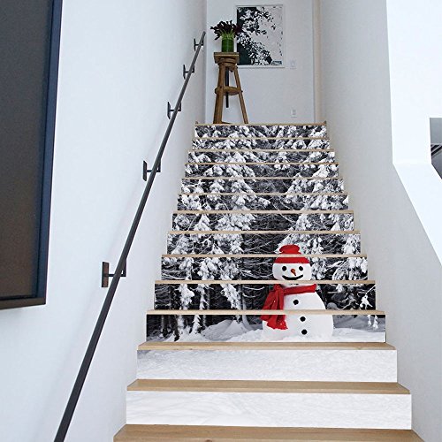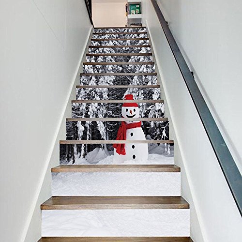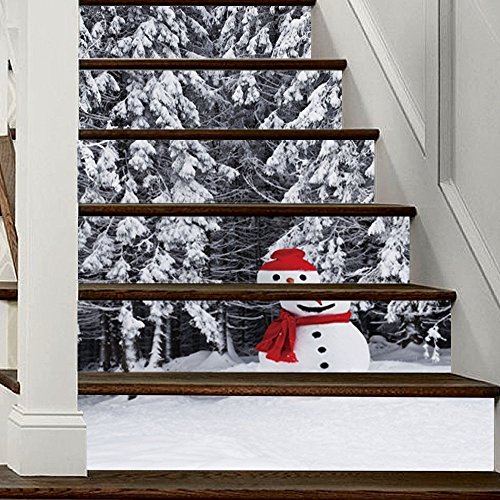 6pcs 3D DIY Christmas Snowman Tile Stairs Stickers Removable Waterproof Wallpaper Stickers Self-adhesive Stair Riser for Stairway or Home Decor