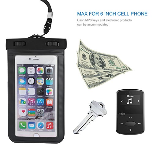 Universal Waterproof Case CellPhone Dry Bag for iPhone6S Plus SE 5S 7 Samsung Galaxy S7 for cell phone up to 6.0" (Black)