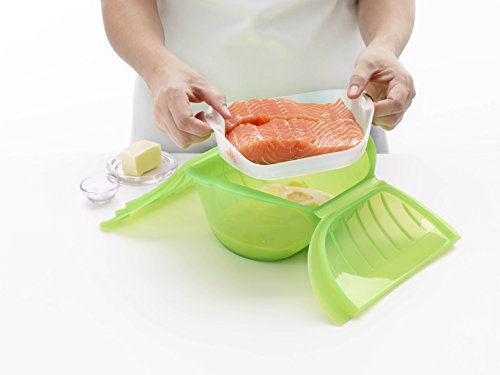 The Lekue Deep Steam Case is the new kitchen revolution that cooks pasta, rice, stews and soups easily and quickly, in the microwave! It is the perfect alternative to traditional pots. Because the case is made of pliable platinum silicone, it is easy to store and to clean. It is also dishwasher safe! Place a full chicken in the case, add herbs spices, lemon juice for moisture and pop in the microwave to have a fully cooked bird in minutes! The steam case comes with this and other great recipes!.Feature