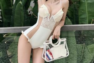 セクシー ワンピースタイプ レース フリル バックリボン バックデザイン 大人ガーリー 海 プール 夏 プチプラ