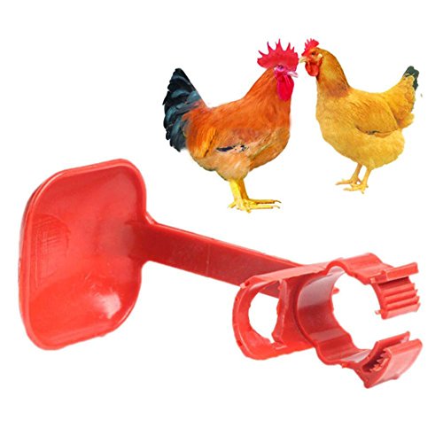 Type: Chicken Drinker Cup Material: Plastic Color: Red Suitable for: 25mm PVC Pipe Height: 14cm/5.11" (Approx.) Plate Width: 6.5cm/2.56" (Approx.) Feature: Convenient, Easy to Use, Safe