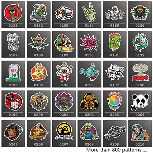 -. Feature : Size of the stickers: 6-10cm; Material: PVC / Made with High Quality Waterproof PVC and Not easy to fade / Stick on where you want!!! Including Wall, Notebook, Travel Case, Car, Bike, Skateboard, Snowboard, PS4, XBOXONE. Even your body!! / Patterns: More than 800 Different Styles!!!! (Random patterns. Some of the patterns may not appear on the picture and the picture showed may not appear on your package, but we will send you 150 different styles) / How to use: Clean then surface and then sticker on. Use your imagination to create your own works! Order Now!!