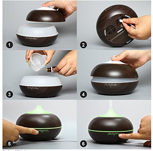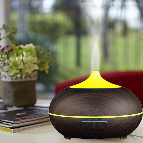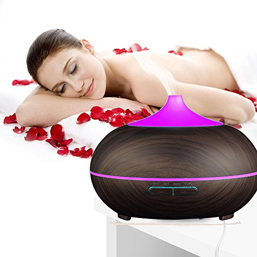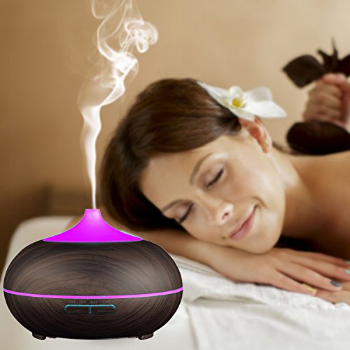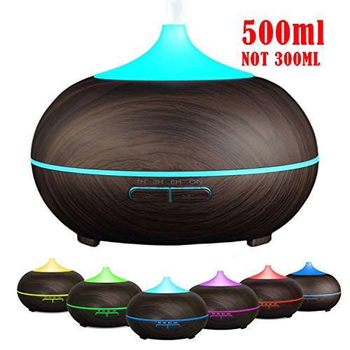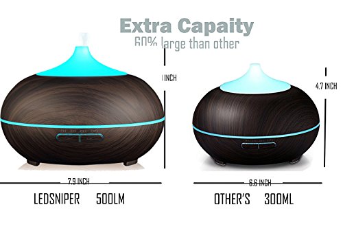 Ledsniper Essential Oil Diffuser Aromatherapy & Humidifier for Bedroom, Yoga, Office & Baby, 500 ml Ultra Sonic Cool Mist, LED Changing Light, Dark Wood Grain Mahogany Color