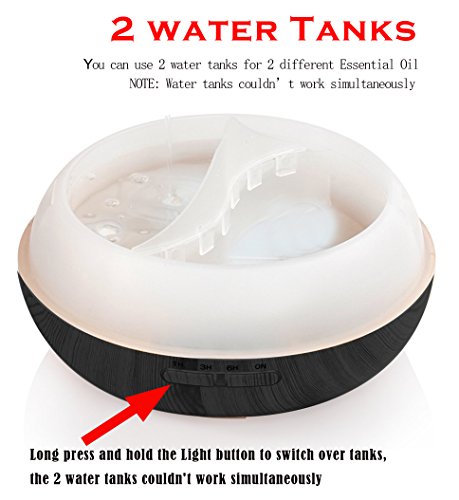 2 Separated Water Tanks: Innovative 2 water tanks design make the aromatherapy optional and effortless. Just fill 2 different essential oils into the water tanks and freely choose which flavor you want.(Long press and hold the Light button to switch over tanks, the 2 water tanks couldn't work simultaneously)or sleeping. It can soften and moisten dry and chapped skin in winter