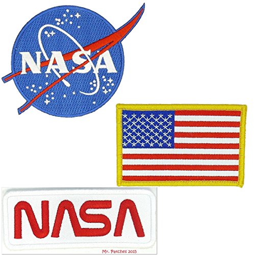 Nasa Blue Logo USA Flag Nasa White-Red Vector Space Shuttle Jacket DIY Embroidered Halloween Costume Badge Set of 3 Easy Iron/Sew On Patch