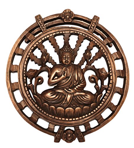 Handmade Wood Circle Buddha Wall Hanging, Wall Art, Buddha Face Wall Decoration
