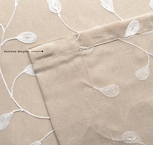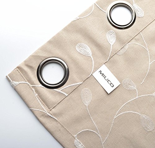 Miuco Floral Embroidery Semi Sheer Curtains Faux Linen Grommet Window Curtains for Bedroom 52 x 63 Inch 2 Panels, Linen