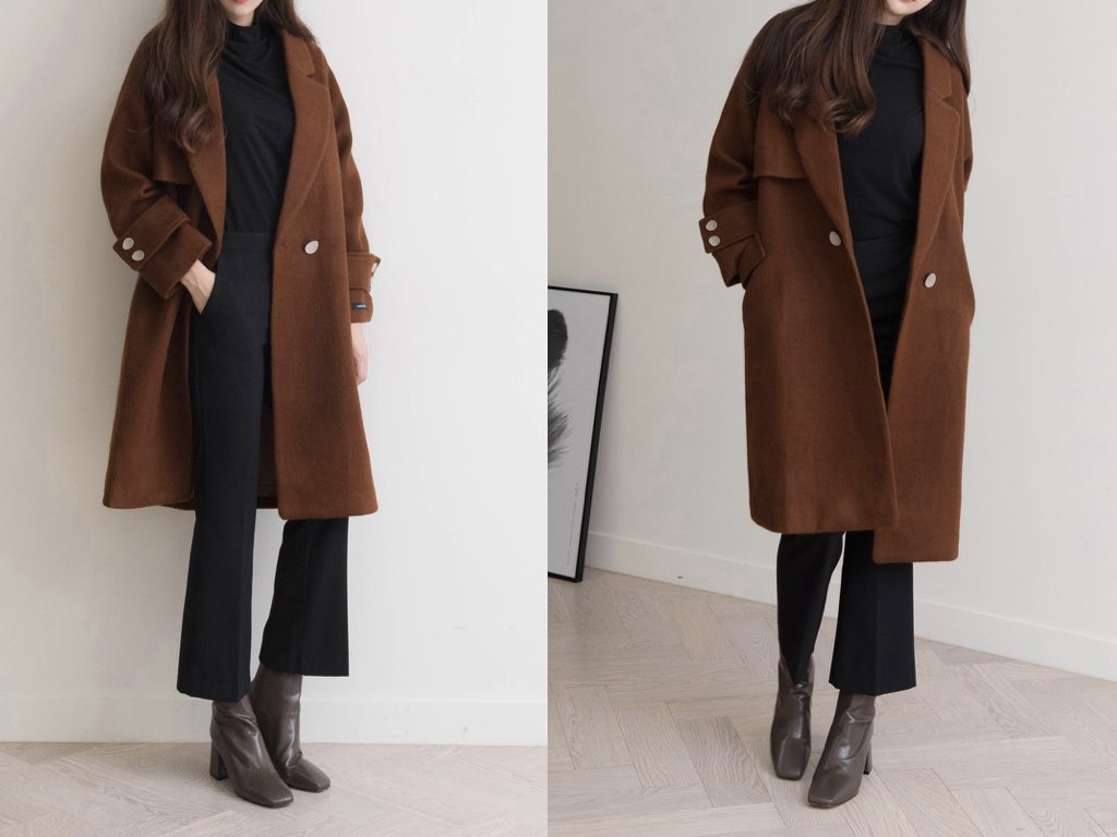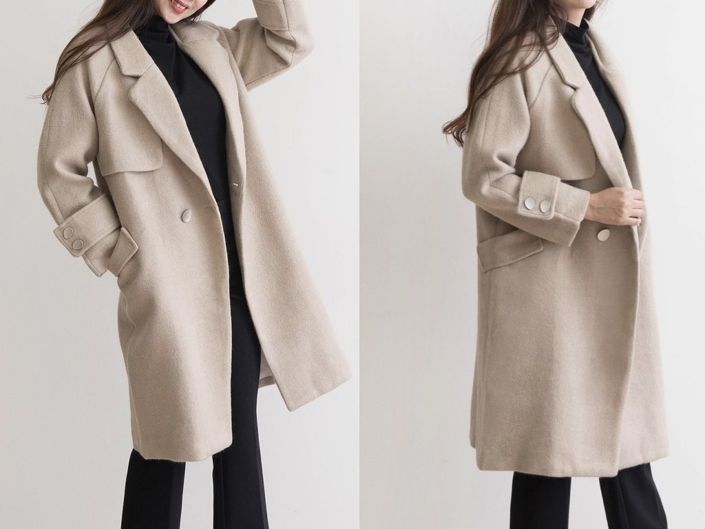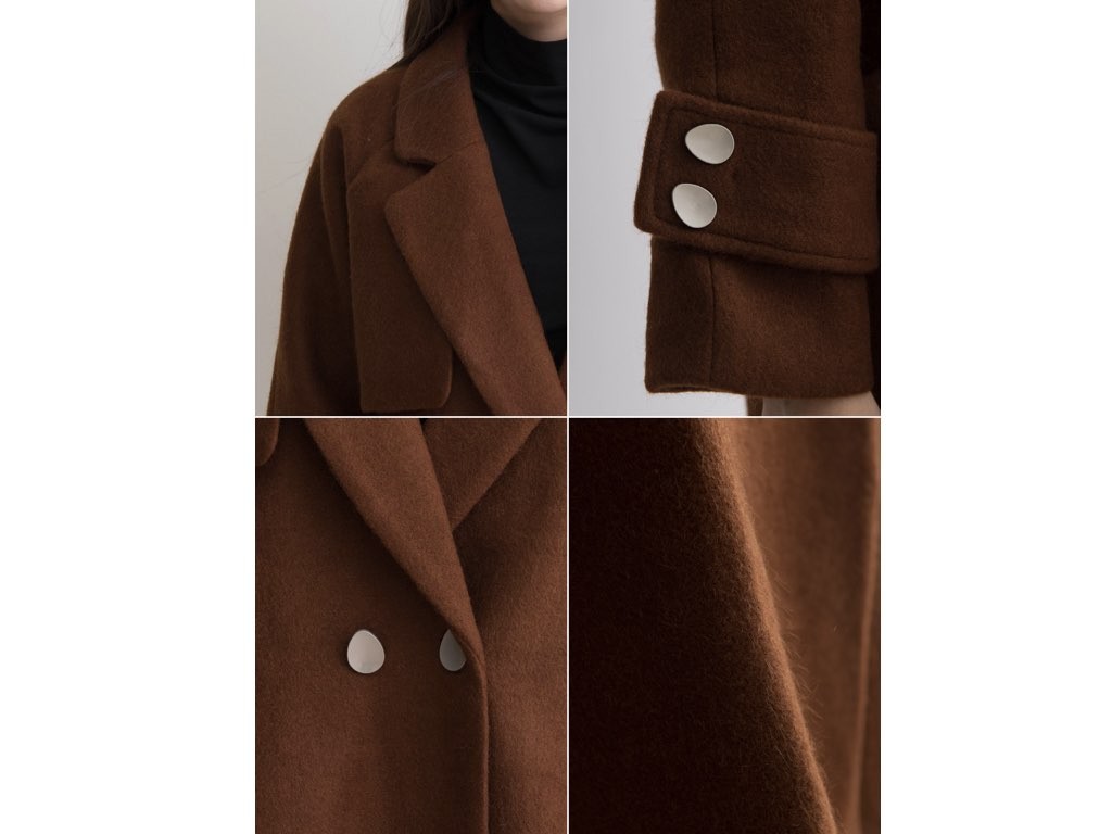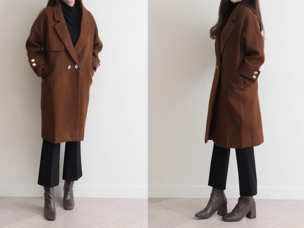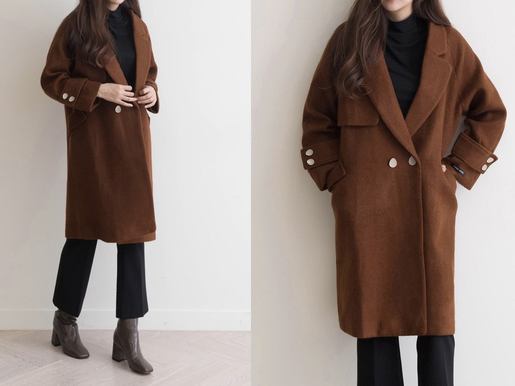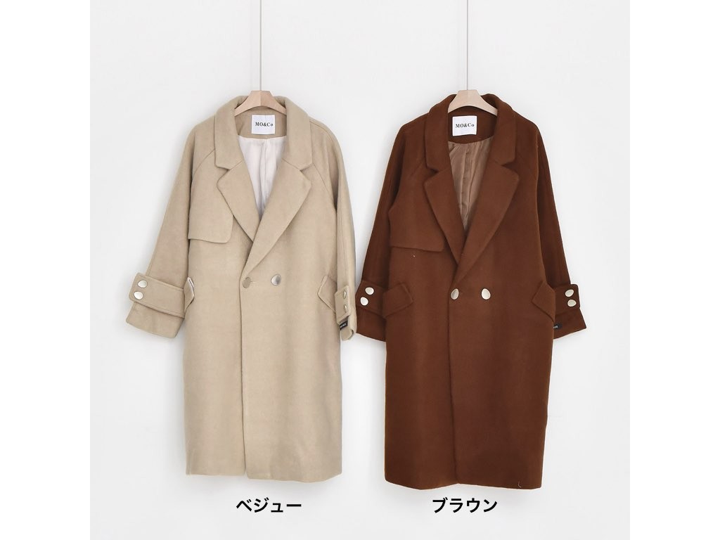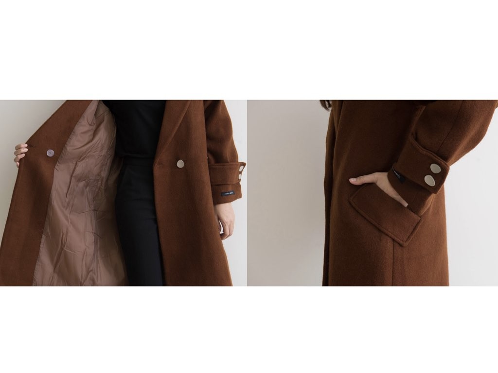 カシミヤ混のチェスターコートです。163cmのモデル着用で、膝丈です。2色展開となっており、すっきりシャープなデザインでハイネックやタートルネックのトップスと相性抜群です。上品で、スタイリッシュなコーディネートができますね。1.基本情報色:2色展開(ベージュ/ブラウン)サイズ:Free素材:カシミヤ混製造国:Korea2.サイズ情報肩幅:ナグランデザイン身幅(胸断面):52cm 腕の長さ:64cm 着丈(前):99cm (サイズは計る方法に応じて±2〜3cmの誤差があります。ご了承お願い致します)モデル着用サイズ:F※着用モデル(163cm、体重47kg、足のサイズ24.5cm)3.その他の情報厚み:中間透け感:なし伸縮性:なし裏地:あり洗濯方法:ドライ(クリーニング)[注意事項]お取り寄せ商品は、海外より仕入れるため納品まで約10日前後いただきます。また店舗でも販売しており、在庫切れになる場合もございます。ご了承お願い致します。