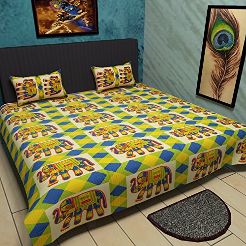 Traditional Mafia Royal Heritage Collection Elephant Prints 100% Pure Cotton Printed Double Bedsheet with 2 Pillow Covers, King, Multicolor